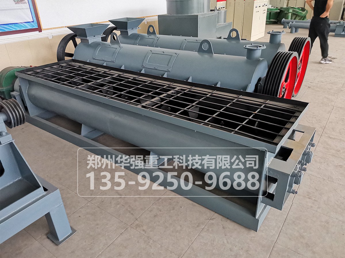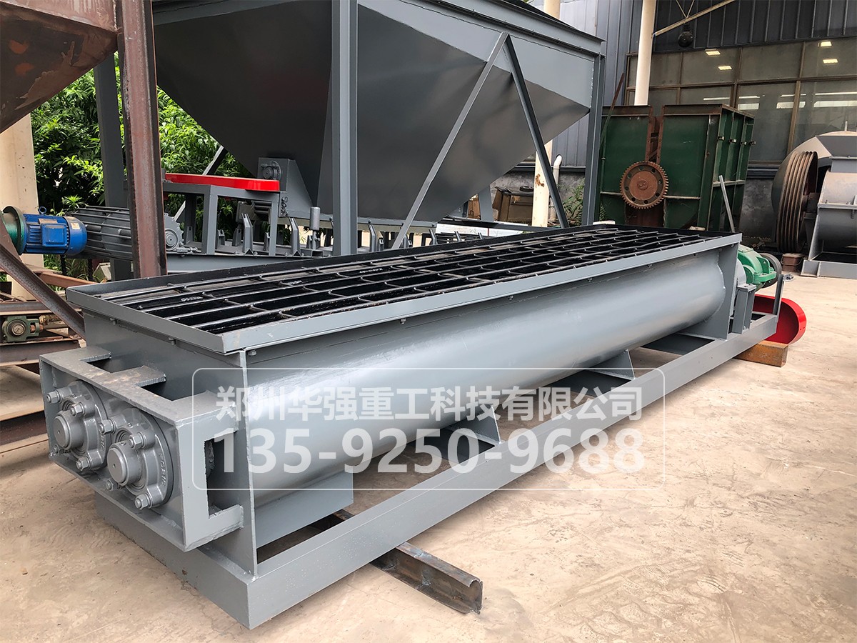 工作原理:當(dāng)干粉狀物料由給料機(jī)定量通過(guò)進(jìn)料口均勻進(jìn)入槽體后,動(dòng)力傳動(dòng)機(jī)械帶動(dòng)裝有多組葉片的螺旋形主軸轉(zhuǎn)動(dòng),通過(guò)對(duì)嚙合傳動(dòng)齒輪帶動(dòng)被動(dòng)螺旋軸與主軸作等速相對(duì)轉(zhuǎn)動(dòng),從而使物料被攪和和并推進(jìn)至槽體加濕段,在物料被推進(jìn)至加濕段后,加濕器自動(dòng)對(duì)物料進(jìn)行噴濕,進(jìn)而至槽體后攪拌段進(jìn)行充分?jǐn)嚭?,?dāng)物料達(dá)到可控濕度后由出料口卸出,進(jìn)入下一道工序。
