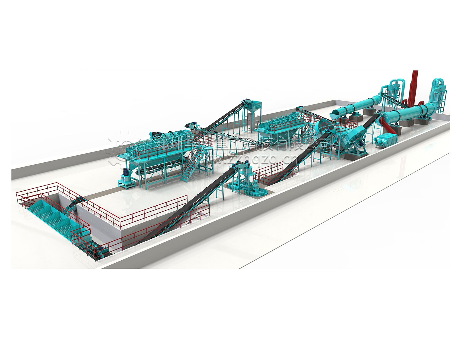 配料系統(tǒng)——鏈式粉碎機——立式圓盤攪拌機——圓盤喂料機——圓盤造粒機——熱風爐——烘干機——旋風除塵器——冷卻機——滾筒篩分機——滾筒篩分機——鏈式粉碎機——自動包裝機。