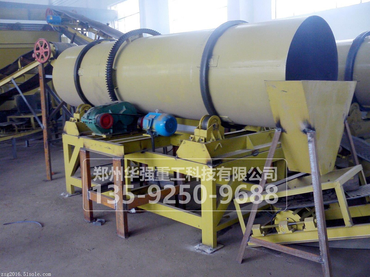 3.后處理:進(jìn)一步對堆肥成品進(jìn)行篩分,篩下物根據(jù)水分含量高低分別進(jìn)行處理。篩下物圓盤造粒機(jī)造粒造粒后,送入華強(qiáng)重工有機(jī)肥專用烘干機(jī),進(jìn)行烘干,按比例添加各種添加物后攪拌混合后制成成品,進(jìn)行分裝,入庫待售。篩上物返回粉碎工序進(jìn)行回用?! ?/p>